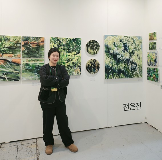 전은진 작가는 '그늘 속 덩어리들'을 주제로 공간의 사각지대에 주목한다. 가장자리, 그늘, 구석에 위치한 대상들에 감정을 투영하고 서사를 상상하며 표현하는 그의 작품은 완결되지 않은 풍경을 통해 현실의 가변성을 드러낸다. 작가는 "지금의 시점에서 완성형의 풍경이 과연 있는가에 대한 의문의 답"으로 간소화되거나 페이드 아웃된 풍경을 제시한다.