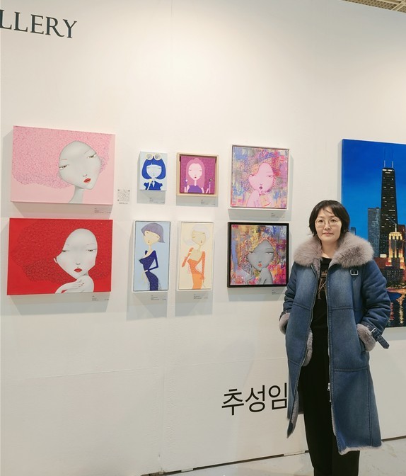 추성임 작가는 'Mrs. CHU'라는 인물을 통해 럭셔리한 라이프스타일을 표현한다. 무표정으로 정면을 응시하는 여성의 도도함과 따뜻함을 동시에 담아내며, 명화 이미지를 단순화한 형태와 현대적 색감으로 조형적 언어를 구현한다. 그의 작품은 현대인의 내면적 허무감과 욕망의 양가적 감정을 보여주는 현대인의 자화상으로 평가받는다.