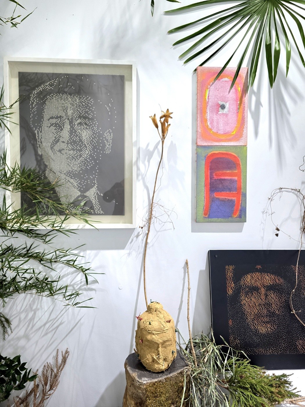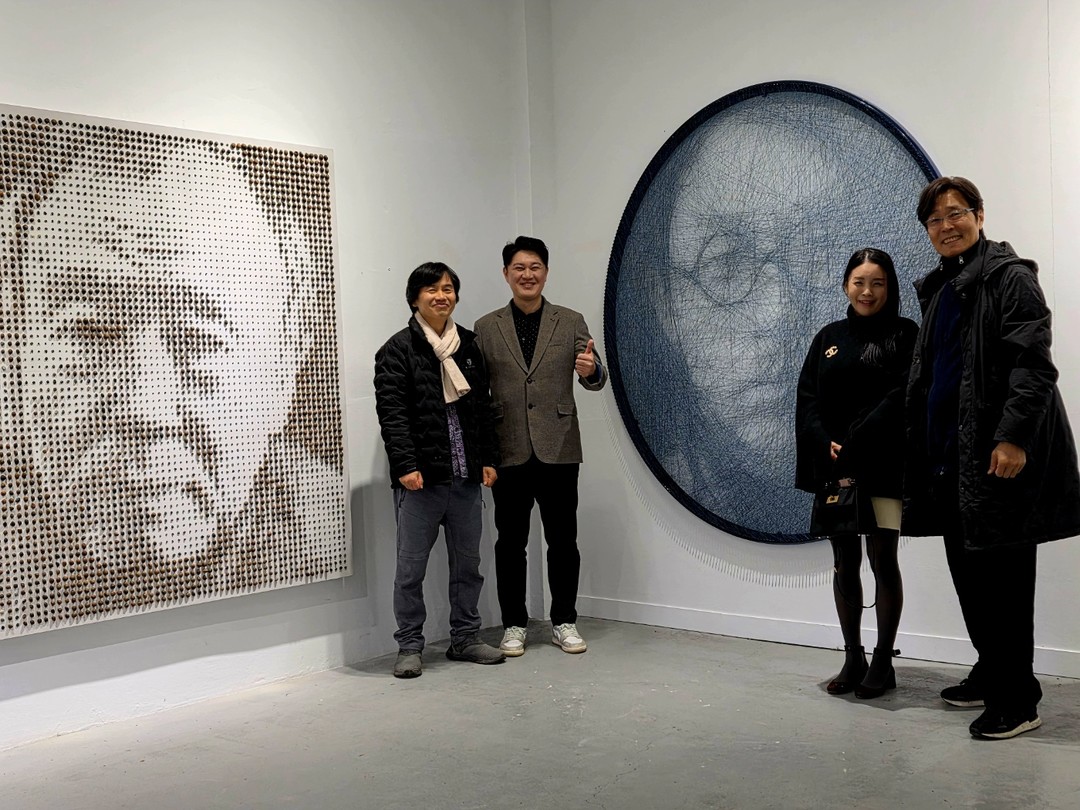 ‘갤러리 예술섬’ 전시회 초대작가 중 한중아트프로젝트 사야는 “헌화가-불인지심” 제목으로 중국 전통 점토조각가 장이 부처 두상 작품, 이동재 조각가의 정동영 정치인 ‘쌀’ 픽셀아트, 한생곤 화가의 ‘일월’ 그림, 위세복 조각가의 체 게바라 혁명가 초상 조각과 오브제 등이 함께 연출되었다.